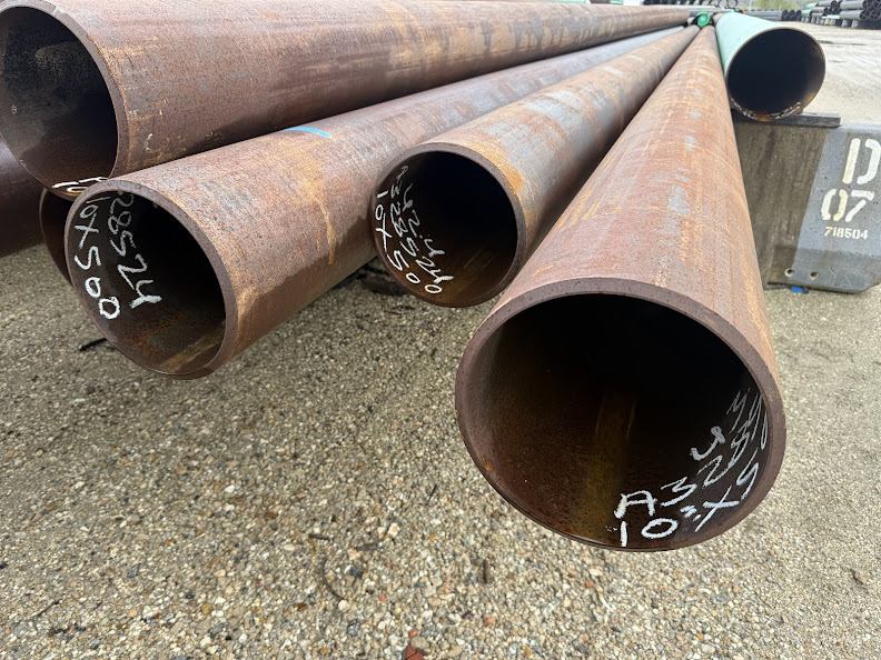 10.75 inch OD × .500 wall carbon steel pipe for sale, commonly supplied for structural, piling, foundation, casing, culverts, pipeline, water well, irrigation, fabrication, fencing, bollards, oilfield, and general construction applications.