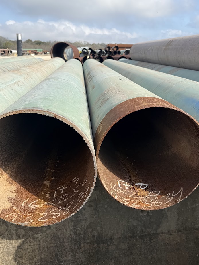 16 inch OD × .250 wall carbon steel pipe for sale, commonly supplied for structural, piling, foundation, casing, culverts, pipeline, water well, irrigation, fabrication, fencing, bollards, oilfield, and general construction applications.