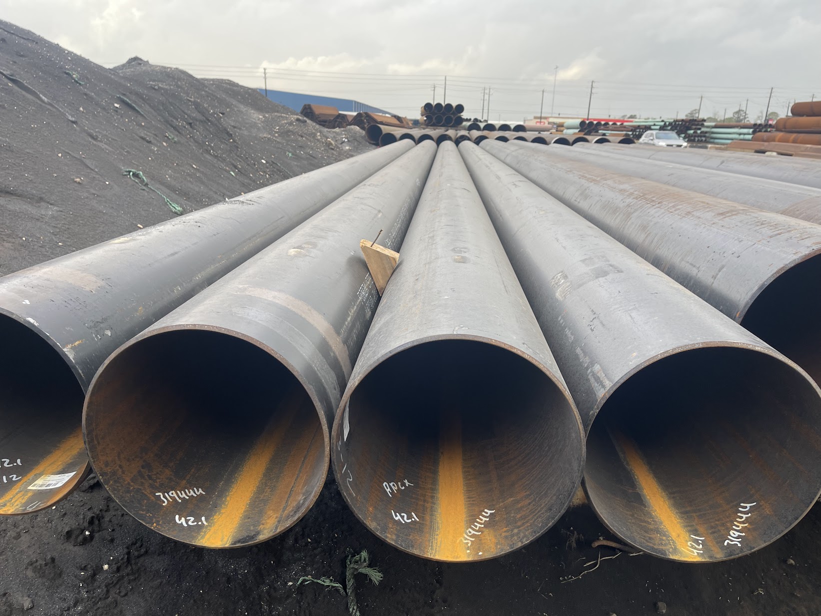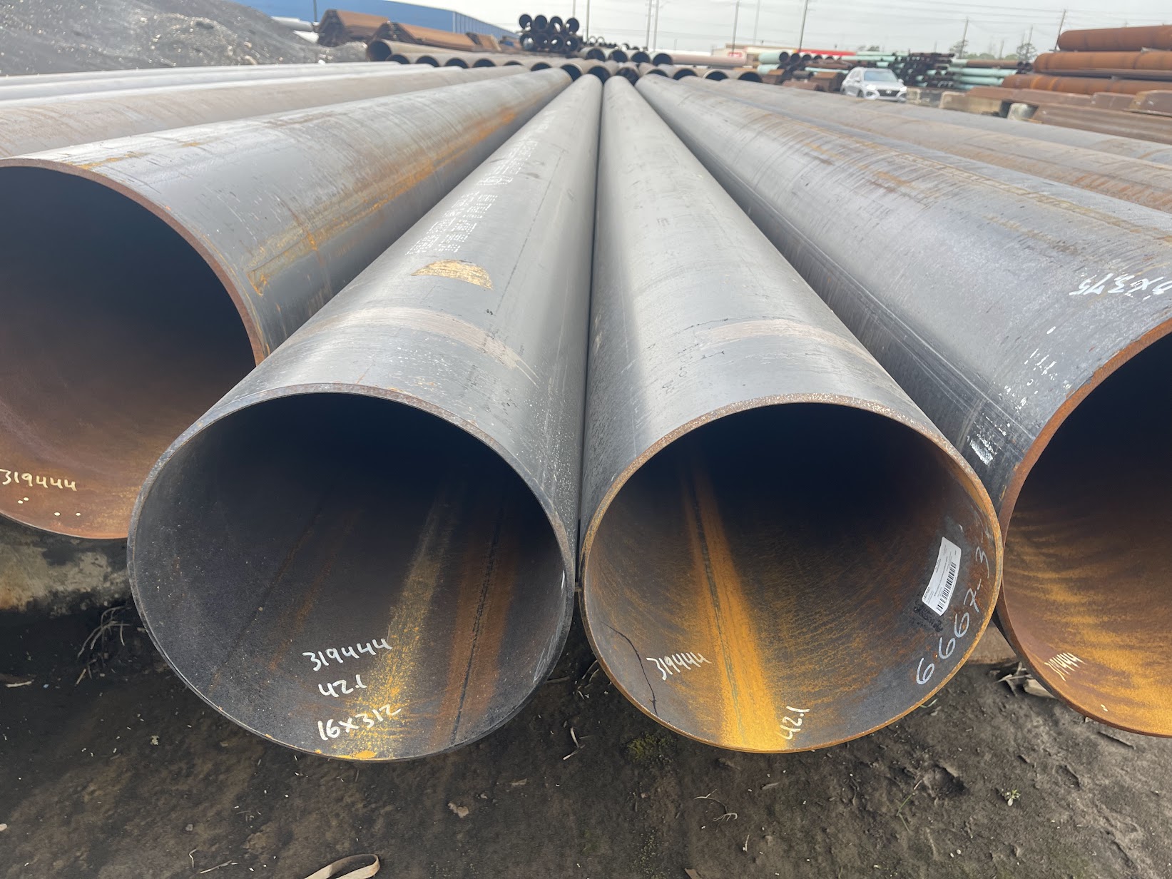 16 inch OD × .312 wall carbon steel pipe for sale, commonly supplied for structural, piling, foundation, casing, culverts, pipeline, water well, irrigation, fabrication, fencing, bollards, oilfield, and general construction applications.