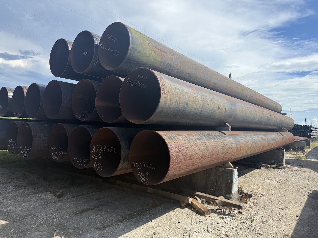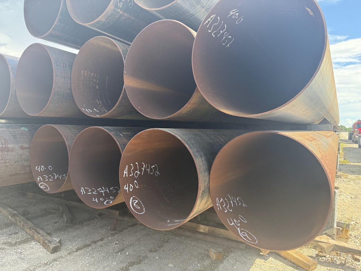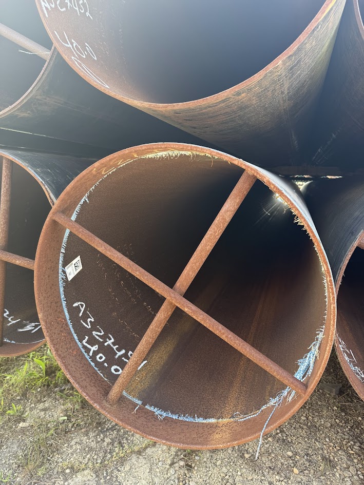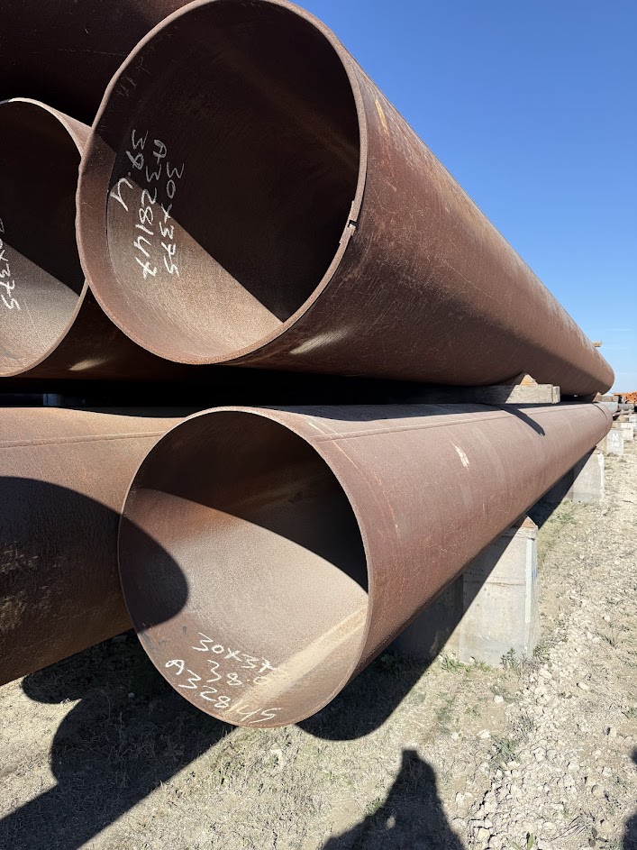30 inch OD × .375 wall carbon steel pipe for sale, commonly supplied for structural, piling, foundation, casing, culverts, pipeline, water well, irrigation, fabrication, fencing, bollards, oilfield, and general construction applications.